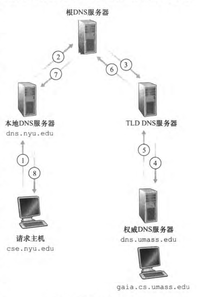 - 本地 DNS 依次问:根 → 顶级域 → 权威域