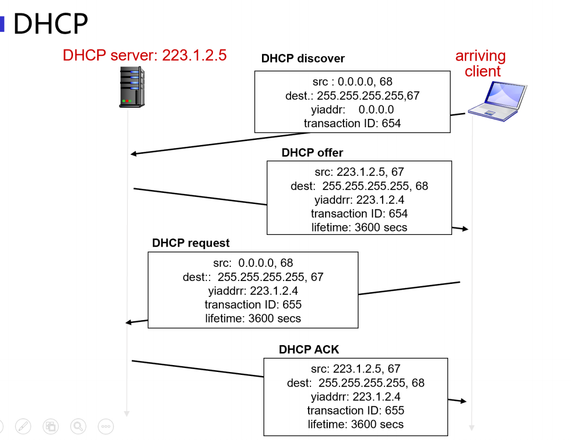 - DHCP ACK:服务器确认分配,主机正式使用该 IP;若失败则 NACK。